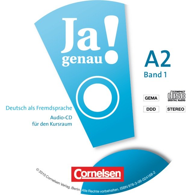 Ja genau! A2 : Band 1. : Audio-CD für den Kursraum / [Sprecher Denis Abrahams und Andere]. - Berlin : Cornelsen, 2010. - 1 płyta audio (CD) : digital, stereo. ; 12 cm.