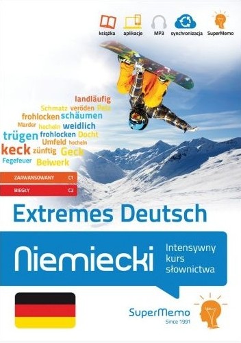 Poznaj 15 tysięcy najważniejszych słów niemieckich na poziomie zaawansowanym i biegłym (C1-C2) i zapamiętaj je na zawsze dzięki metodzie inteligentnych powtórek SuperMemo! Niemiecki. Extremes Deutsch - Intensywny kurs słownictwa zapewni Ci najlepsze wsparcie dla intensywnej i skutecznej nauki: kiedy przygotowujesz się do egzaminów językowych, takich jak matura lub Goethe-Zertifikat, albo szlifujesz ogólną znajomość języka. Do Twojej dyspozycji oddajemy podręcznik, który obejmuje kluczowe słownictwo i wyrażenia wybrane ze znacznie obszerniejszej multimedialnej wersji kursu, podzielone na 2 poziomy oraz 12 tematów przewodnich, z tłumaczeniami i przykładami użycia, uzupełniony o: kursy multimedialne, do nauki 15 tysięcy słów, dostępne w aplikacjach SuperMemo.com dla systemów Android, iOS i Windows PC, zawierające 18 godzin nagrań w wykonaniu niemieckich lektorów oraz ponad 700 zdjęć do haseł i wyrażeń, które ułatwią naukę poprzez skojarzenia, nagrania MP3, 80 minut nagrań w wykonaniu niemieckich lektorów, do osłuchiwania się ze słownictwem i wymową, np. podczas spaceru, jazdy samochodem lub ćwiczeń.* * Kupując książkę, otrzymujesz kod dostępu do jej rozszerzeń multimedialnych.