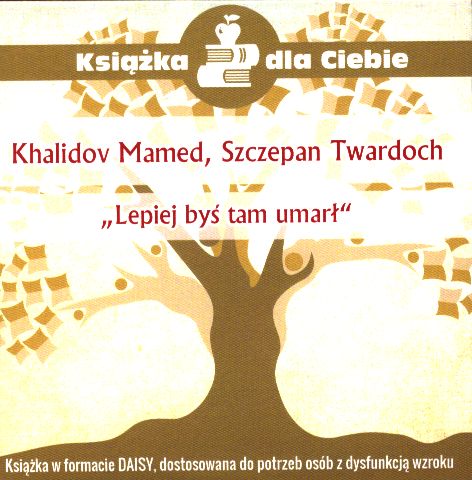 Lepiej, byś tam umarł [Dokument dźwiękowy] / Mamed Khalidov, Szczepan Twardoch. - Warszawa : Fundacja Edukacji Nowoczesnej, 2017. - 1 płyta audio (CD) : zapis cyfrowy, stereo. ; 12 cm.