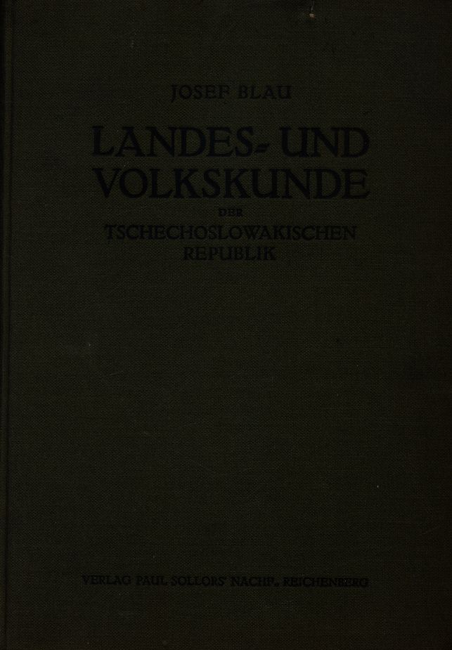 Landes- und Volkskunde der Tschechoslowakischen Republik / von Josef Blau. - II. vermehrte Auflage. - Reichenberg : Verlag Paul Sollors' Nachf., 1927. - 384 strony, [23] strony tablic, 2 karty tablic złożone : ilustracje, mapy ; 23 cm.