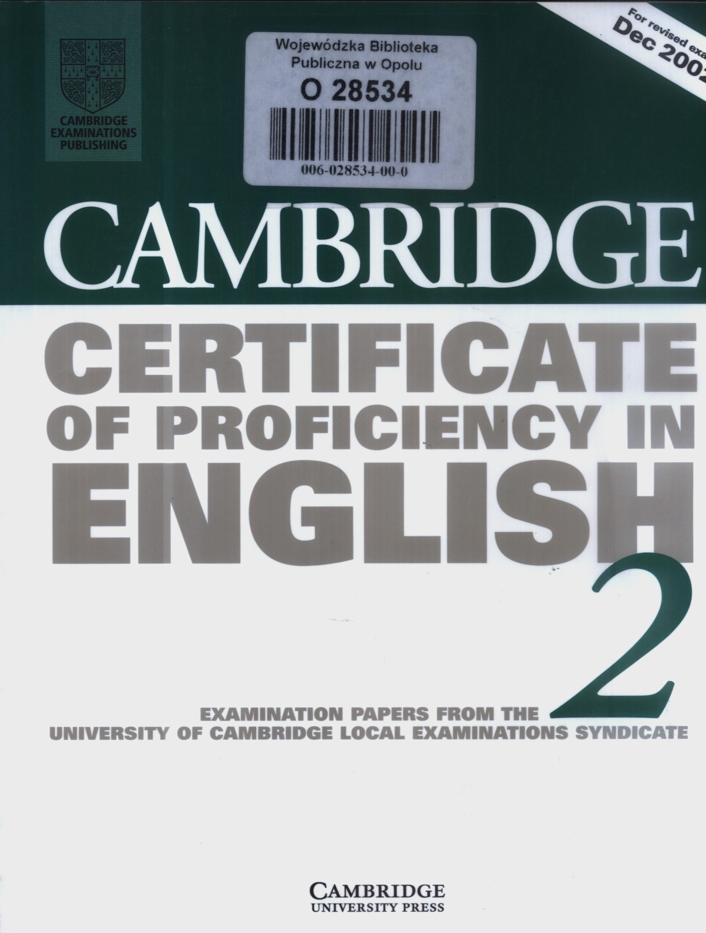 U góry okładki: For revised exam Dec 2002.