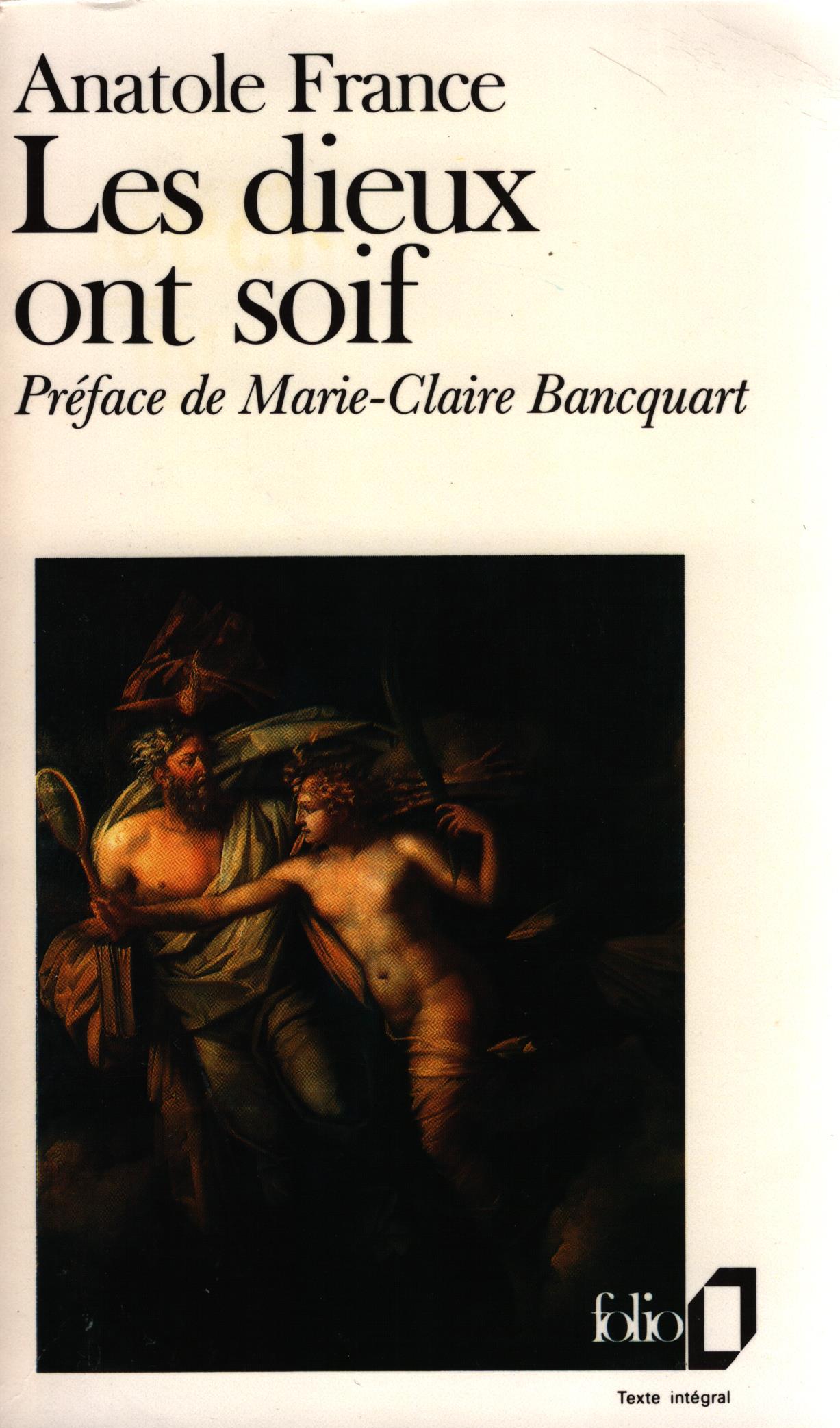 Les dieux ont soif : quand il choisit pour titre ce mot de Camille Desmoulins, Anatole France ne veut nullement rejeter sur une fatalité tragique les atrocités de la Terreur. Ce texte admirable décrit l'horreur du fanatisme, l'obscurantisme gagnant les Lumières elles-mêmes, la barbarie prenant le masque du progrès. En 1912, ce livre du patriarche de la Gauche française qui dénonçait les excès de la Révolution fut accueilli comme un paradoxe. Aujourd'hui, cette représentation alarmée de l'histoire se lit comme une lucide préface à l'horrible xxe siècle, un avertissement contre l'ignorance et la peur qui engendrent la bêtise, la grande tueuse.
