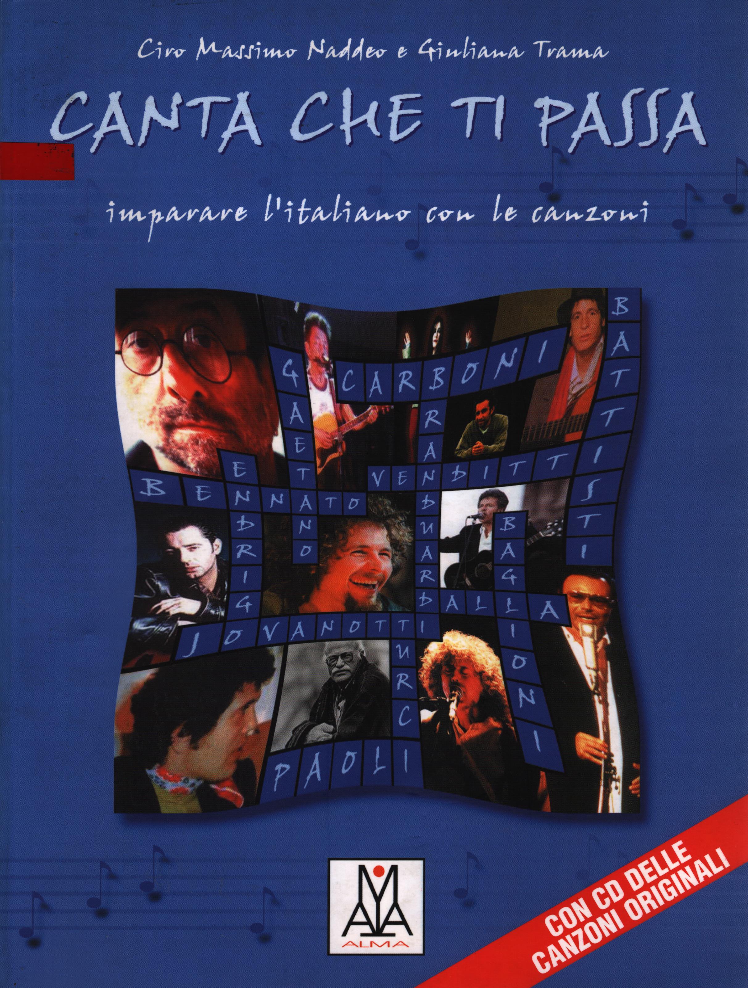 "Canta che ti passa" è un corso di lingua italiana attraverso le canzoni.Per ogni canzone viene proposta un'unità didâttica completa con un'ampia gamma di attività comunicative per la classe, giochi, cloze, test, esercizi di comprensione e produzione, attività di riflessione grammaticale, schede, ecc.