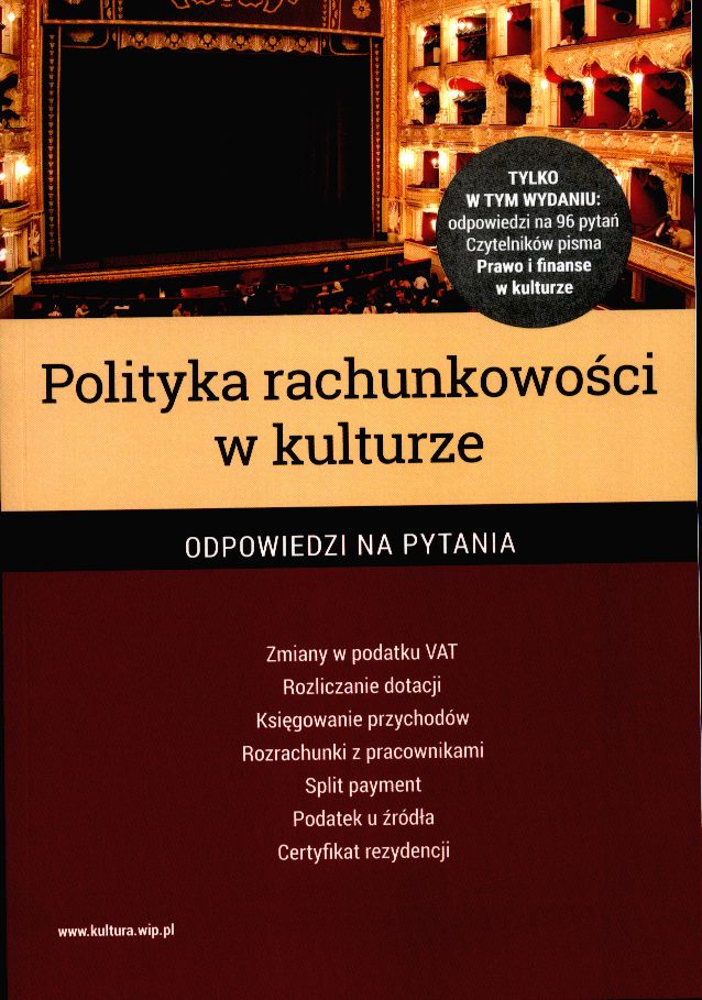 Na stronie tytułowej i okładce: Tylko w tym wydaniu: odpowiedzi na 96 pytań Czytelników pisma "Prawo i Finanse w Kulturze". Na okładce skrócony spis treści.
