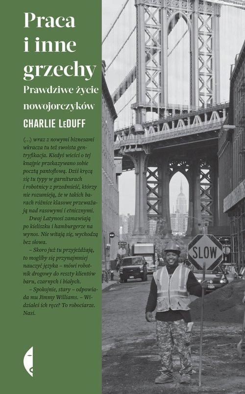 Nowy Jork. Olśniewające miasto przyciągające tłumy marzycieli z całego świata. Od dekad symbol sukcesu, postępu i kariery. Synonim amerykańskiego snu. Bywa jednak najsmutniejszym miejscem na ziemi – gorsze od porażki jest tu bycie niewidzialnym. I to właśnie niewidzialnym LeDuff poświęca swoją książkę. Pisze o tych, którzy mieszkają w ciasnych mieszkaniach. O strażakach i ich rodzinach, którzy po 11 września 2001 roku stracili wszystko. O ludziach, którym rytm pracy, snu i dnia wyznaczają kaprysy szefa, właściciela mieszkania, sędziego w sądzie rodzinnym czy burmistrza. To nie książka o nowojorczykach, którym drzwi otwierają portierzy, tylko o samych portierach. O robotnikach, ulicznych handlarzach, sprzątaczkach, rybakach, imigrantach i barmanach. O ludziach, których nie na co dzień zauważamy, ale których brak okazałby się dotkliwy. Praca i inne grzechy to uniwersalna i błyskotliwa opowieść o etosie pracy i hołd złożony niewidzialnym mieszkańcom amerykańskiej metropolii. To również reporterskie studium rozwarstwienia ekonomicznego i powolnej degradacji klasy robotniczej, tak powszechnych bez względu na szerokość geograficzną.