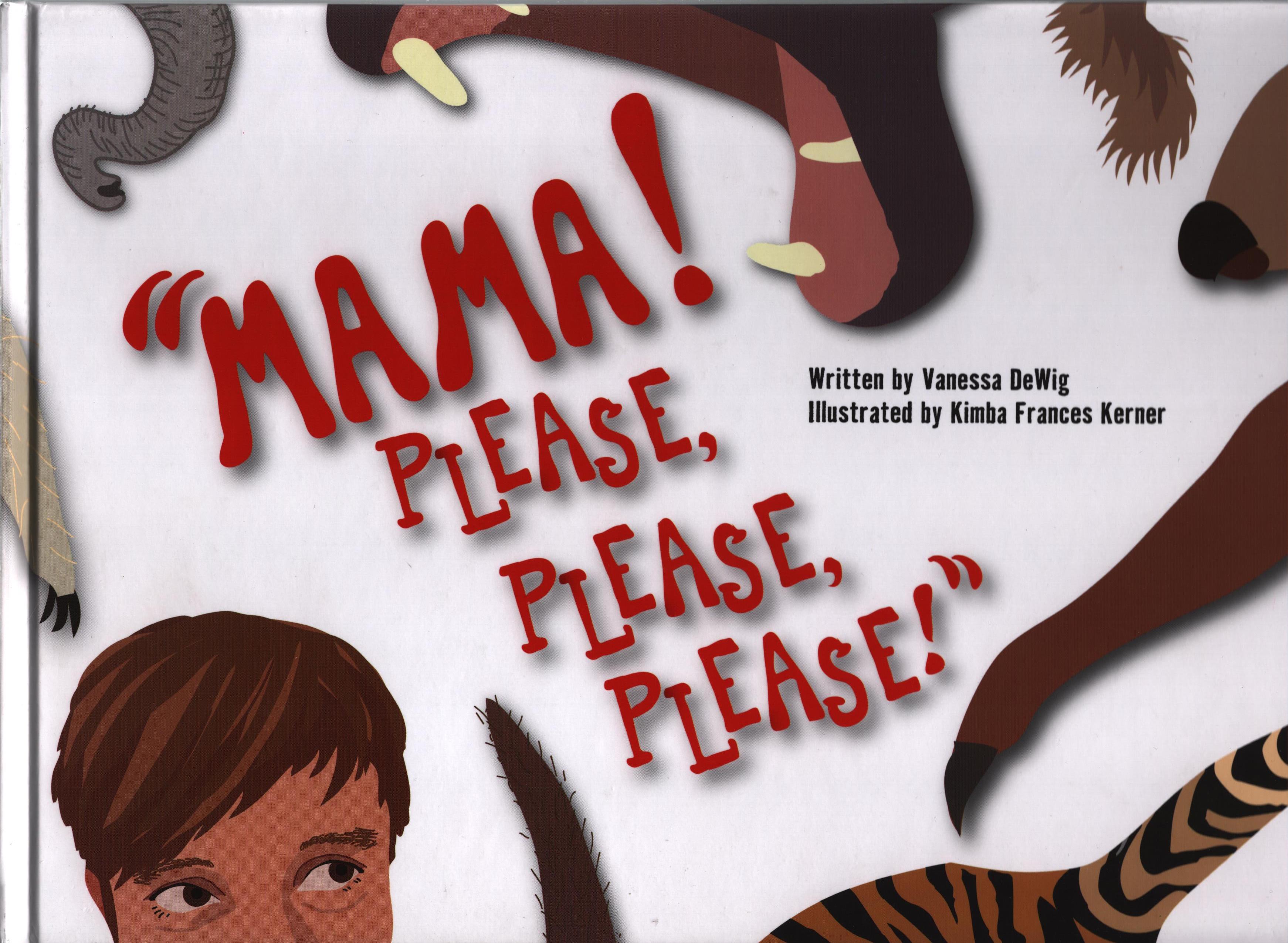 Książka „Mama! Please, please, please” skierowana jest do dzieci w wieku do lat 12. To urocza historia młodego chłopca i jego psa. Historia miłości między człowiekiem, a zwierzęciem, którą przygotowały dwie niezwykłe i wrażliwe dusze: Vanessa DeWig (tekst), Kimba Kerner (ilustracje).