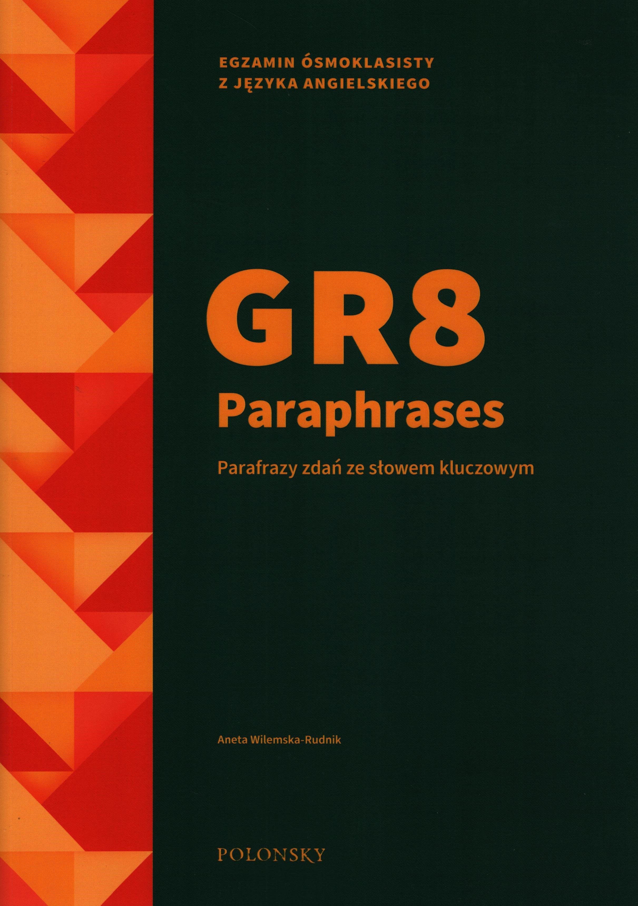 GR8 paraphrases : parafrazy zdań ze słowem kluczowym / Aneta Wilemska-Rudnik. - First published. - Bielsko-Biała : Polonsky, 2020. - 159 stron ; 30 cm.