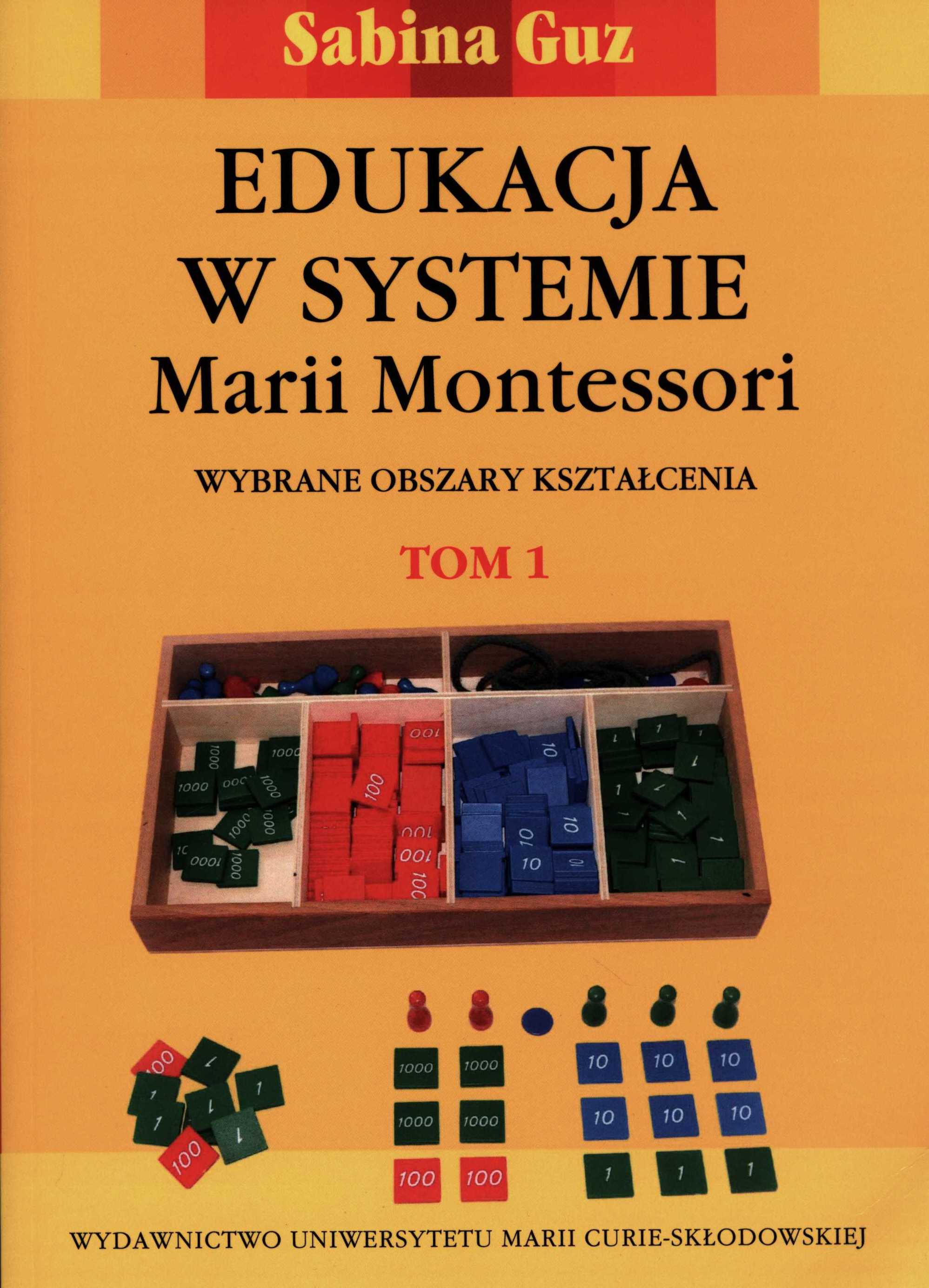 Jest to drugie wydanie książki, zmienione i uzupełnione. Autorka po przedstawieniu czytelnikom podstaw edukacji w systemie Montessori dokładniej zajmuje się niektórymi obszarami kształcenia dzieci w tym systemie, a mianowicie obszarem życia codziennego, kształcenia zmysłów oraz wybranymi zagadnieniami edukacji matematycznej prowadzonej w przedszkolu i szkole. W książce przedstawiono teoretyczne podstawy pracy nauczycieli w systemie Montessori oraz oryginalne materiały dydaktyczne z obszaru kształcenia zmysłów i edukacji matematycznej, opracowane przez twórczynię metody, jej współpracowników i następców. Prezentacji materiałów dydaktycznych towarzyszą przykłady praktycznych rozwiązań metodycznych oraz zestawy zadań i ćwiczeń możliwych do wykorzystania przez uczniów i nauczycieli w pracy indywidualnej i zespołowej. Omawiane zagadnienia są bogato ilustrowane barwnymi fotografiami, rysunkami, schematami.