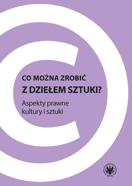 Publikacja pokonferencyjna przygotowana z okazji 10-lecia działalności Koła Naukowego Law&Art stanowi próbę wskazania aktualnych problemów i współczesnych wyzwań będących domeną niemal wszystkich gałęzi prawa w odniesieniu do kultury i sztuki. Składa się z pięciu części: "Nabyć, zbyć"; "Zniszczyć"; "Ukraść, sfałszować"; "Stworzyć, zarejestrować, ochronić"; "Zapoznać się".