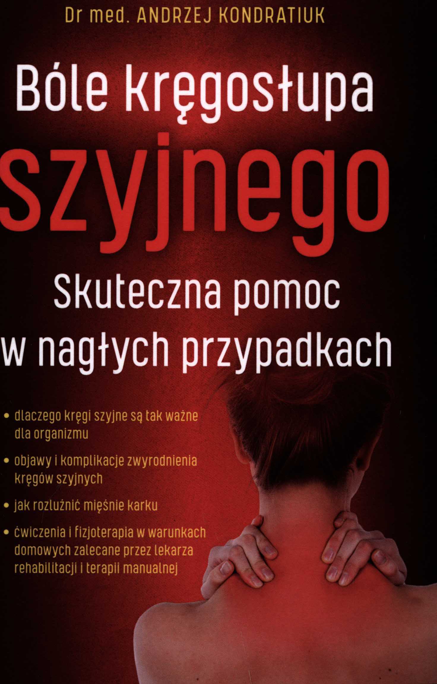 Na okładce: Dlaczego kręgi szyjne są tak ważne dla organizmu, objawy i komplikacje zwyrodnienia kręgów szyjnych, jak rozluźnić mięśnie karku, ćwiczenia i fizjoterapia w warunkach domowych zalecane przez lekarza rehabilitacji i terapii manualnej.