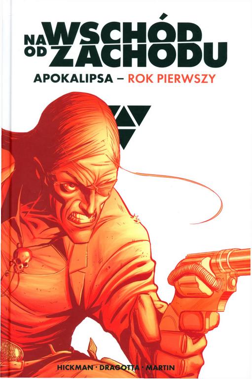 Rzeczy, które nas dzielą, są silniejsze niż te, które nas łączą. W wypalonym świecie, w którym Unia przegrała amerykańską wojnę domową, a Wybrańcy zajmujący najwyższe stanowiska w rządach byłej Ameryki Północnej kierują się Przesłaniem zwiastującym koniec wszystkiego, jedyną nadzieją niedobitków ludzkości jest tajemniczy biały jeździec. Dni ostateczne nadchodzą, jak się okazuje, znacznie szybciej, gdy wędrowiec ten postanawia szukać zemsty za śmierć najbliższych, a jego byli towarzysze Jeźdźcy Apokalipsy budzą się do życia z własnymi planami. NA WSCHÓD OD ZACHODU: APOKALIPSA ROK PIERWSZY to wyjątkowa mozaika gatunków: fantastycznonaukowego westernu, politycznego technothrillera i wreszcie horroru sięgającego po motywy ze starożytnych wierzeń. Jej autorem jest Jonathan Hickman (X-Men, Avengers, Fantastyczna Czwórka), uznany za jednego z najbardziej pomysłowych scenarzystów komiksowych ostatniego dziesięciolecia. Album zawiera materiały opublikowane pierwotnie w zeszytach EAST OF WEST #115 oraz EAST OF WEST: THE WORLD (ONE-SHOT).