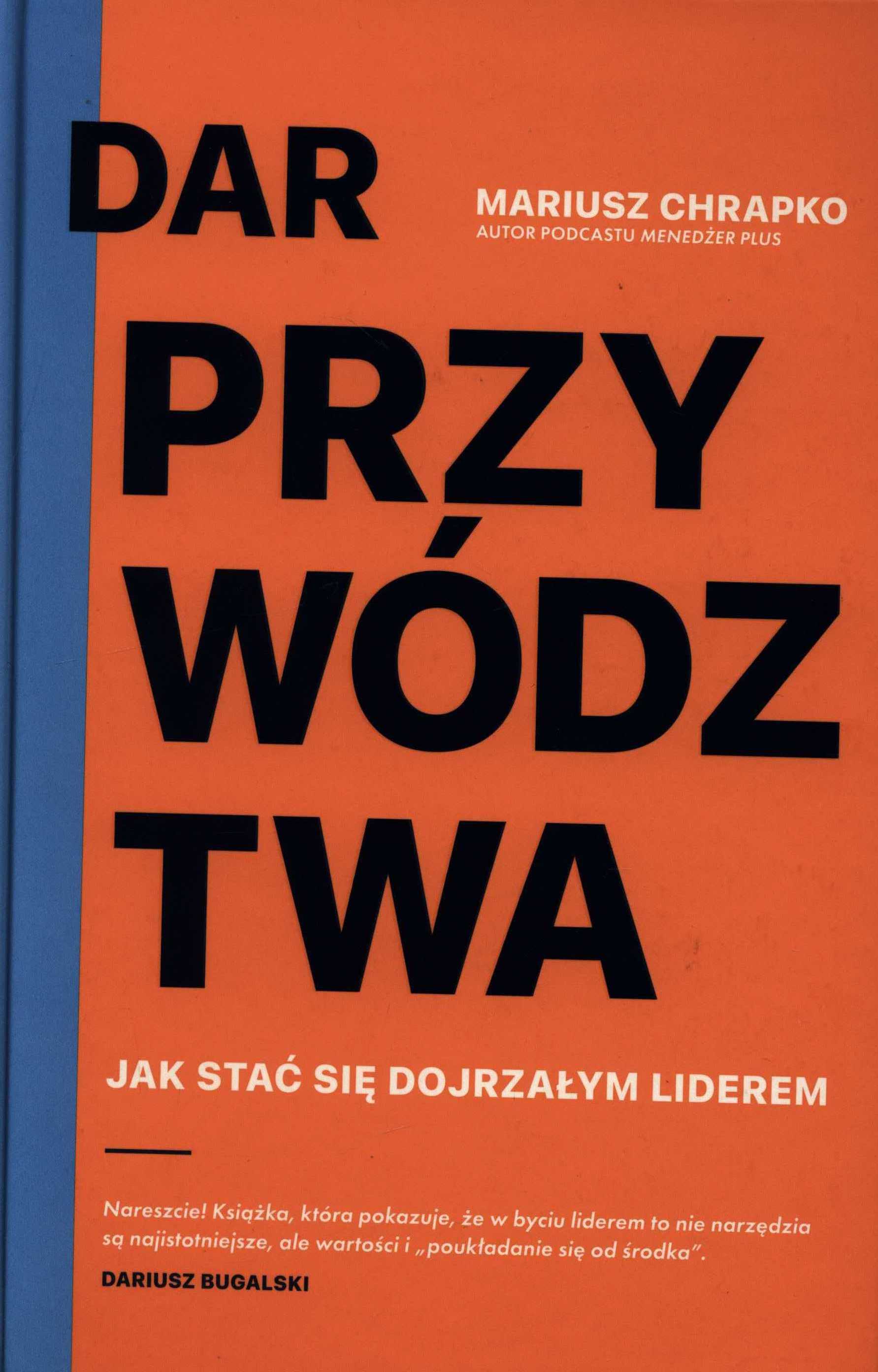 Co łączy wielkich filozofów i współczesnych przywódców? Dlaczego efektywność firmy nie wzrasta mimo zaangażowania pracowników? Jak stać się liderem, a nie tylko pełnić jego funkcję? Przywództwo polegające na przygotowywaniu list zadań i korzystaniu z tradycyjnych narzędzi pracy przestało być wystarczające. Świat potrzebuje odważnych i dojrzałych liderów, którzy stworzą środowisko oparte na relacjach międzyludzkich i dadzą współpracownikom impuls do rozwoju. Tylko jak to osiągnąć? Mariusz Chrapko prowadzi własną firmę, doradza liderom w różnych branżach, jest wykładowcą Agile Leadership na Uniwersytecie SWPS oraz autorem podcastu Menedżer Plus i nowoczesnych podręczników zarządzania. Swoje wieloletnie doświadczenie i wiedzę praktyczną odważnie łączy z wykształceniem filozoficznym i proponuje autorską koncepcję życzliwego i satysfakcjonującego przywództwa, której nie znajdziesz w standardowych książkach branżowych. Dar przywództwa to prawdziwe liderskie kompendium, w którym autor – przewodnik i mentor – pokaże ci, dlaczego:koncepcja pracy oparta na uniwersalnych wartościach moralnych jest bardziej skuteczna niż techniki biznesowe, firma działa lepiej, gdy szef codziennie znajduje 15 minut tylko dla siebie, świadoma lektura Rozmyślań Marka Aureliusza da lepsze efekty niż czytanie kolejnej nieskutecznej książki o zarządzaniu. Nikt nie rodzi się „gotowcem”, ale każdy z nas ma w sobie potencjał dobrego przywódcy. Dzięki tej książce nauczysz się, jak z niego korzystać.
