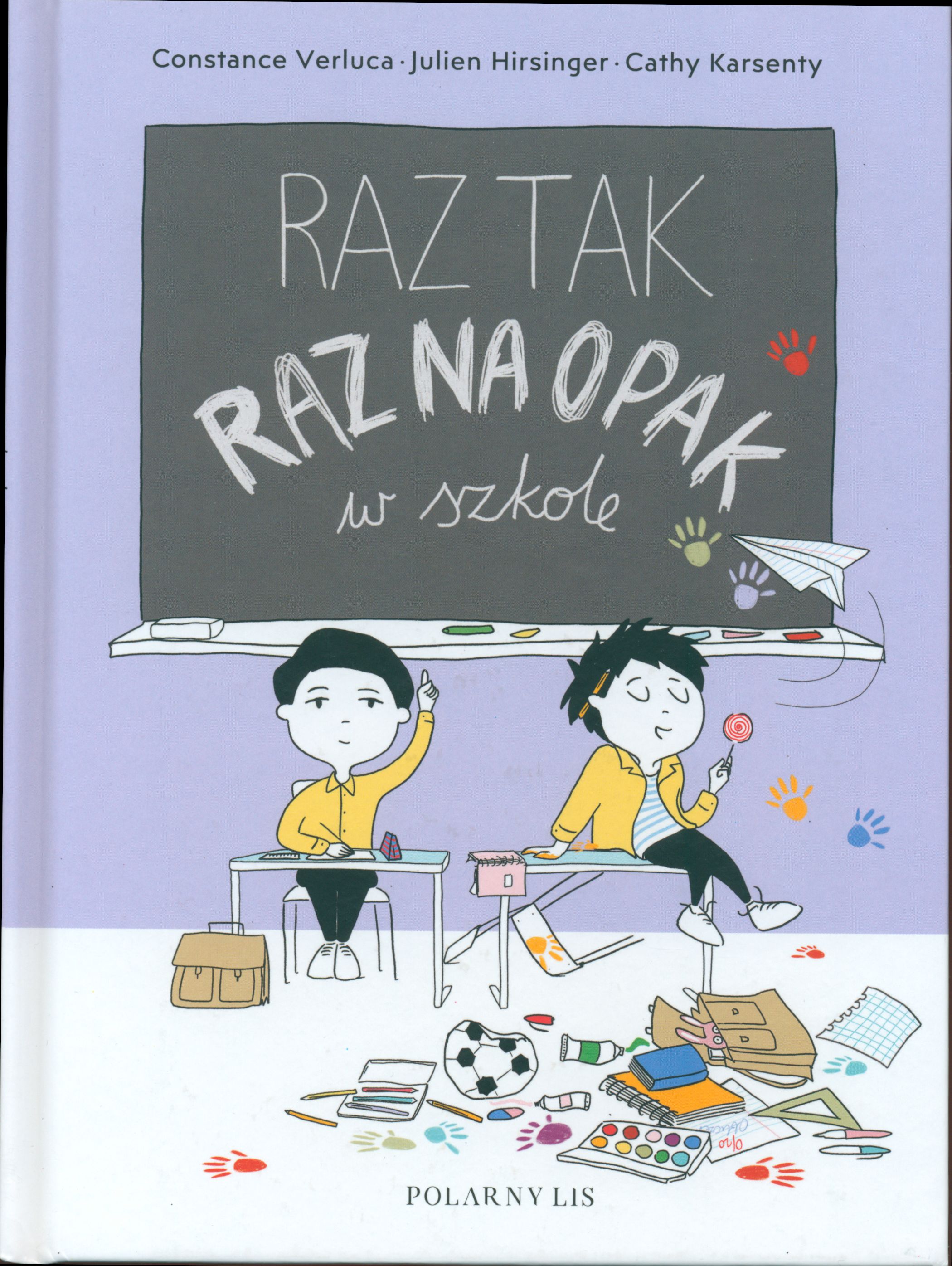 "Raz tak raz na opak w szkole" to kontynuacja przezabawnej, znakomicie opowiedzianej i narysowanej historii o braciach bliźniakach, Rządku i Bałganie. Jeden robi wszystko porządnie, a drugi ma wokół siebie wieczny nieład. Jeden jest uważny i uprzejmy, a drugi roztrzepany i niesforny. Tę różnicę temperamentów doskonale widać w szkole. Rządek – zawsze przygotowany i uważny na lekcjach, uprzejmy dla nauczycieli oraz kolegów – zbiera same pochwały. Natomiast Bałgan, który wciąż gubi gumki i długopisy, podczas lekcji myśli o niebieskich migdałach, dokucza kolegom i nie zważa na nauczycieli, kolekcjonuje same uwagi. Chyba że… no właśnie. Warto przeczytać tę historię do końca.