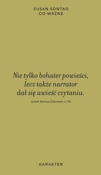 Nietłumaczony dotąd na język polski ostatni tom esejów, który ukazał się za życia amerykańskiej intelektualistki. Teksty powstałe w latach 1982–2001 dotyczą literatury, filmu, teatru, sztuki oraz tańca współczesnego. Sontag porusza się po tych tematach ze znawstwem i dociekliwością. Najwięcej miejsca poświęca literaturze. Przygląda się językowi poezji i prozy, interpretuje dzieła tych, których podziwiała i których zachłannie, choć niebezkrytycznie, czytała (Cwietajewej, Gombrowicza, Sebalda, Walsera, Zagajewskiego, Machado de Assisa, Barthes’a), oraz pisarzy i pisarek, z którymi łączyła ją przyjaźń (Kiš czy Hartwick). Poprzez teksty kultury przygląda się nowym trendom, żegna ze światem wielkich narracji (jej ukochane kino!), próbuje zajrzeć pod powierzchnię tego, co polityczne – gdy opisuje wyzwania związane z wystawieniem "Czekając na Godota" w Sarajewie. By zbadać związki między tym, co rzeczywiste, i tym, co nierzeczywiste, sięga do bunraku, a gdy chce oddać hołd radosnej energii twórczej, przywołuje obrazy Howarda Hodgkina. Z jej zapisków przebija pasja odkrywania i opisywania świata, ale i niepokój o to, co przyniesie przyszłość. „Dziś książki są gatunkiem zagrożonym. Przez książki rozumiem także takie warunki czytania, w których literatura może istnieć i wpływać na duszę” – pisze w datowanym na 1996 rok bardzo osobistym liście do Borgesa.
