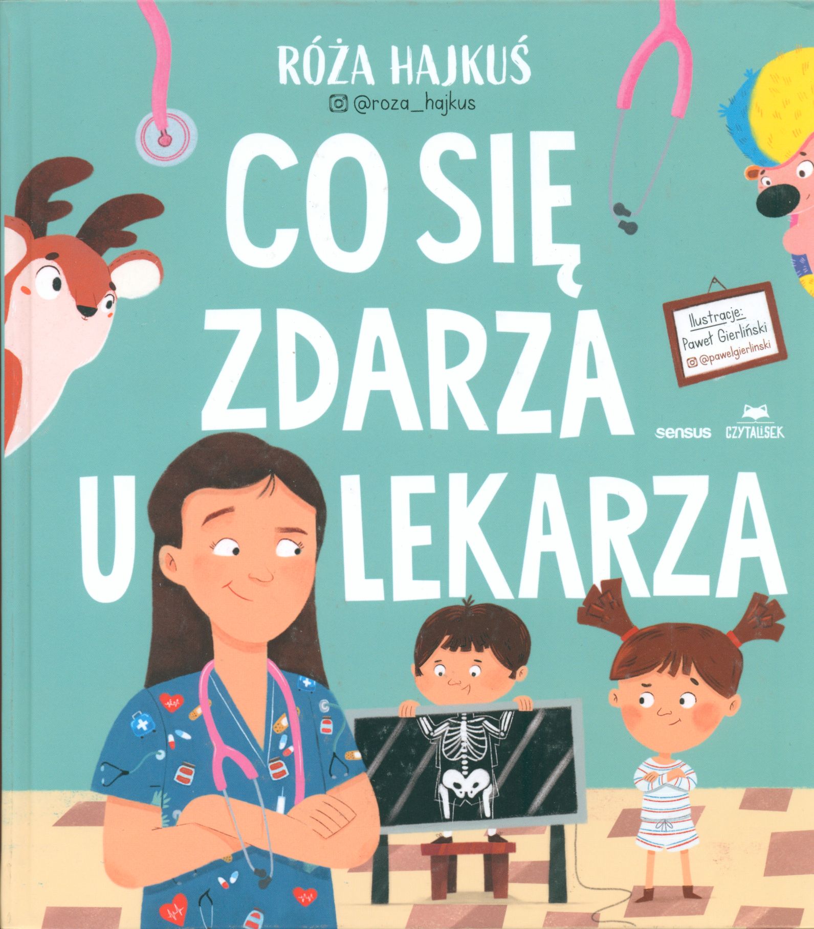 Co się zdarza u lekarza / Róża Hajkuś @roza_hajkus ; ilustracje: Paweł Gierliński @pawelgierlinski. - Gliwice : Sensus : Czytalisek, copyright 2024. - 107, [5] stron : fotografie, ilustracje ; 24 cm.
