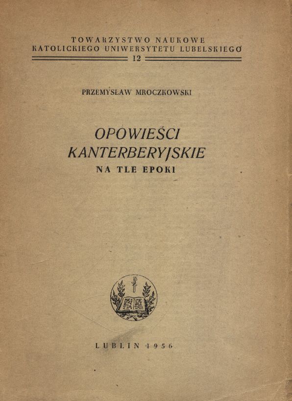 "Opowieści kanterberyjskie" na tle epoki / Przemysław Mroczkowski. - Lublin : Towarzystwo Naukowe Katolickiego Uniwersytetu Lubelskiego, 1956. - 443 strony, [9] kart tablic : ilustracje, fotografie, errata ; 21 cm.