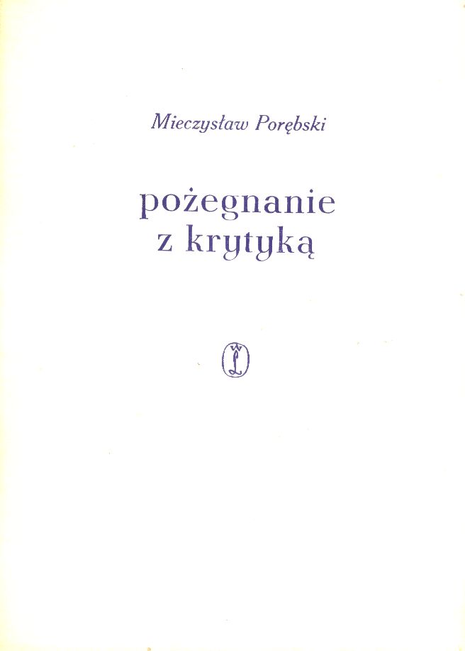 Pożegnanie z krytyką / Mieczysław Porębski. - Wyd. I. - Kraków : Wydawnictwo Literackie, 1966. - 259, [1] strona : fotografie, ilustracje, plany, portrety ; 23 cm.