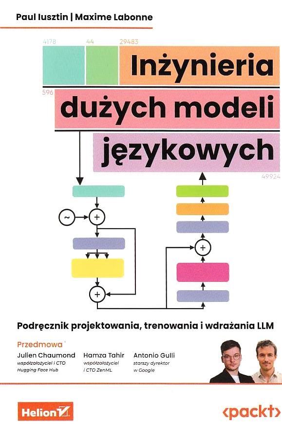 The handbook "Inżynieria dużych modeli językowych" (Engineering Large Language Models) offers a comprehensive introduction to designing, training, and deploying large language models (LLMs). Authors Paul Iusztin and Maxime Labonne provide a practical approach to language model engineering, covering both theoretical foundations and practical applications. The book includes detailed instructions on building models, optimizing them, and integrating them into various production environments. It is an invaluable resource for engineers, researchers, and practitioners working in artificial intelligence and natural language processing.