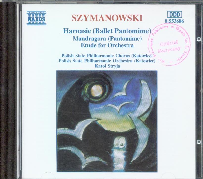 Zawiera: Harnasie (Ballet Pantomime), Op. 55 / ork. Polish State Philharmonic Orchestra (Katowice) ; dyr. Stryja Karol ; tenor Henryk Grychnik ; chór Polish State Philharmonic Chorus (Katowice) (28:34 min.); Mandragora (Pantomime), Op.43 / ork. Polish State Philharmonic Orchestra (Katowice) ; dyr. Karol Stryja ; tenor Stanisław Meus (23:26 min.). - I (14:41 min.); II (8:45 min.); Etude for Orchestra in B Flat Minor, Op.4, No.3 / ork. Polish State Philharmonic Orchestra (Katowice) ; dyr. Karol Stryja ; orkiestracja Grzegorz Fitelberg (5:25 min.).