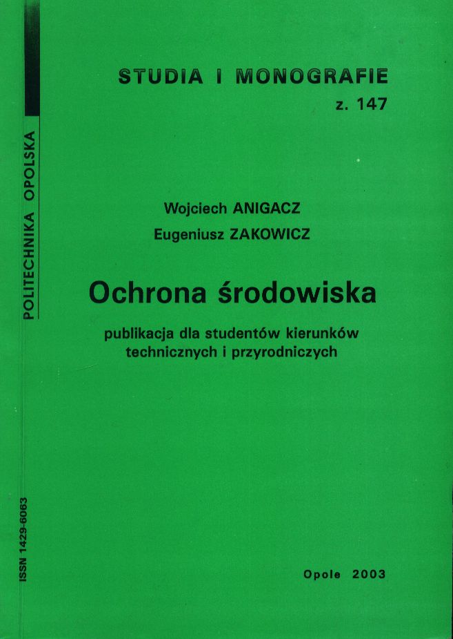 "Podręcznik zawiera wybrane zagadnienia z zakresu szeroko pojętej ochrony środowiska i rekultywacji. Dotyczy on problemów przyrody nieożywionej i przewidziany jest dla studentów kierunków technicznych Politechnik, a może być też przeznaczony dla kierunków przyrodniczych Uniwersytetu, szczególnie studentów geologii i geografii. Główną uwagę poświęcono na zagadnienia zanieczyszczenia i ochrony powietrza, wody i gleby oraz rekultywacji."