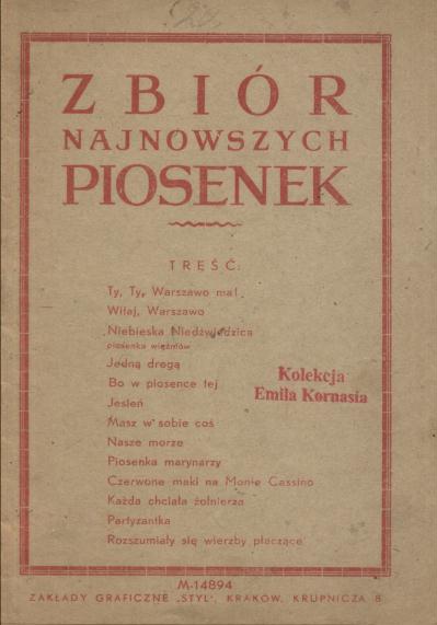 Zawiera m.in.: Ty, ty Warszawo ma! ; Witaj, Warszawo ; Niebieska Niedźwiedzica ; Czerwone maki na Monte Cassino ; Rozszumiały się wierzby płaczące.