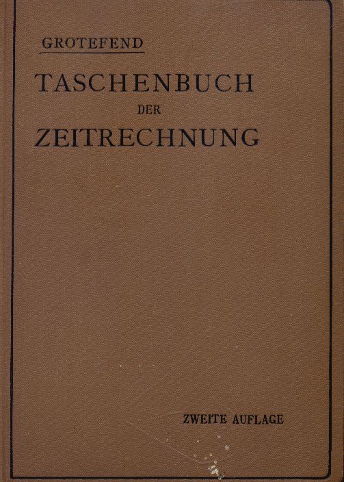 Taschenbuch der Zeitrechnung des deutschen Mittelalters und der Neuzeit / entworfen von H. Grotefend. - Zweite Vermehrte und Verbesserte Auflage. - Hannover ; Leipzig : Hahn'sche Buchhandlung, 1905. - [4], 186 stron ; 18 cm.