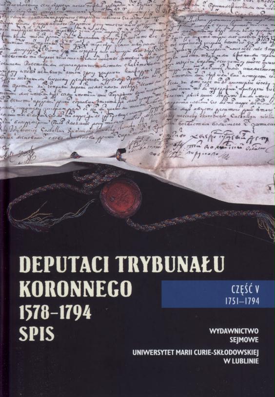Przez długi czas w opracowaniach dotyczących Trybunału Koronnego wyraźnie zauważalna była tendencja do traktowania go przede wszystkim jako instytucji. Najwięcej uwagi poświęcano formalnoprawnym aspektom jego działalności, procedurom, ceremoniałowi, ewentualnie wydarzeniom obyczajowym o charakterze skandalu. Nieco na marginesie zainteresowań pozostawali ludzie tworzący Trybunał Koronny - deputaci. […] Dzieje Trybunału Koronnego w latach 1751-1794 można podzielić na dwa etapy. Pierwszy, do 1763 r., to czas kontynuacji. […] Drugi, od 1764 r., kiedy zaczęto wprowadzać reformy dość gruntownie zmieniające organizację Trybunału, terminy i miejsca trybunalskich kadencji i, co dla nas najbardziej interesujące, liczbę deputatów, terminy i sposób ich elekcji. Poważnym zmianom w tym okresie, przede wszystkim za sprawą rozbiorów, ulegała też geografia sejmików deputackich. (Ze Wstępu)