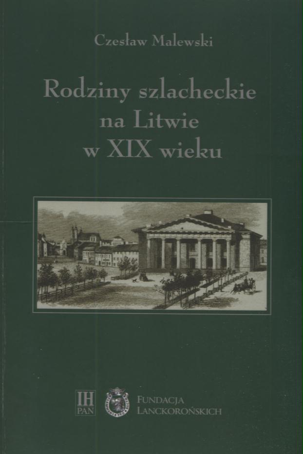 Rodziny szlacheckie na Litwie w XIX wieku : powiaty lidzki, oszmiański i wileński / Czesław Malewski. - Warszawa : Instytut Historii PAN, 2016. - 958 stron, [1] karta tablic złożona : mapa ; 25 cm + 1 dysk optyczny (CD)