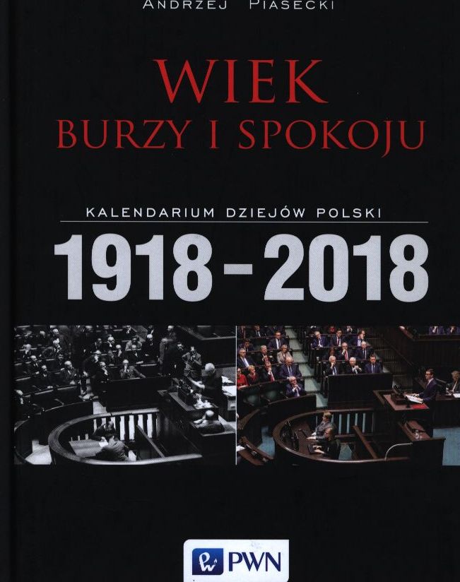 Wiek burzy i spokoju : kalendarium dziejów Polski 1918-2018 / Andrzej Piasecki. - Warszawa : Wydawnictwo Naukowe PWN, 2018. - 231, [2] strony : fotografie, ilustracje, mapy, portrety, tabele, wykresy ; 24 cm.