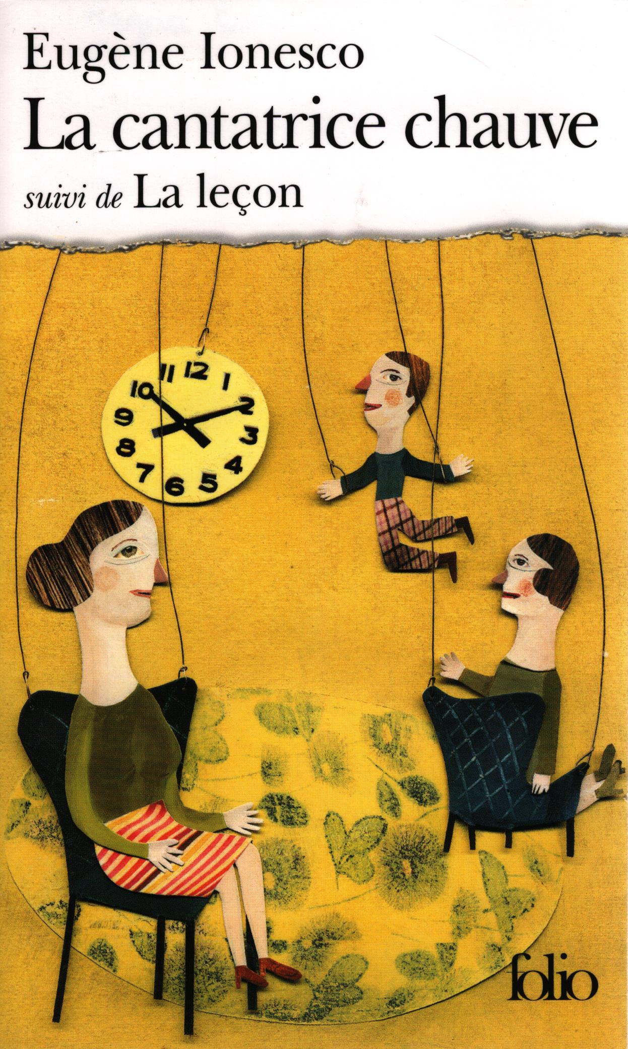 «Mme Smith : Tiens, il est neuf heures. Nous avons mangé de la soupe, du poisson, des pommes de terre au lard, de la salade anglaise. Les enfants ont bu de l'eau anglaise. Nous avons bien mangé ce soir. C'est parce que nous habitons dans les environs de Londres et que notre nom est Smith...»