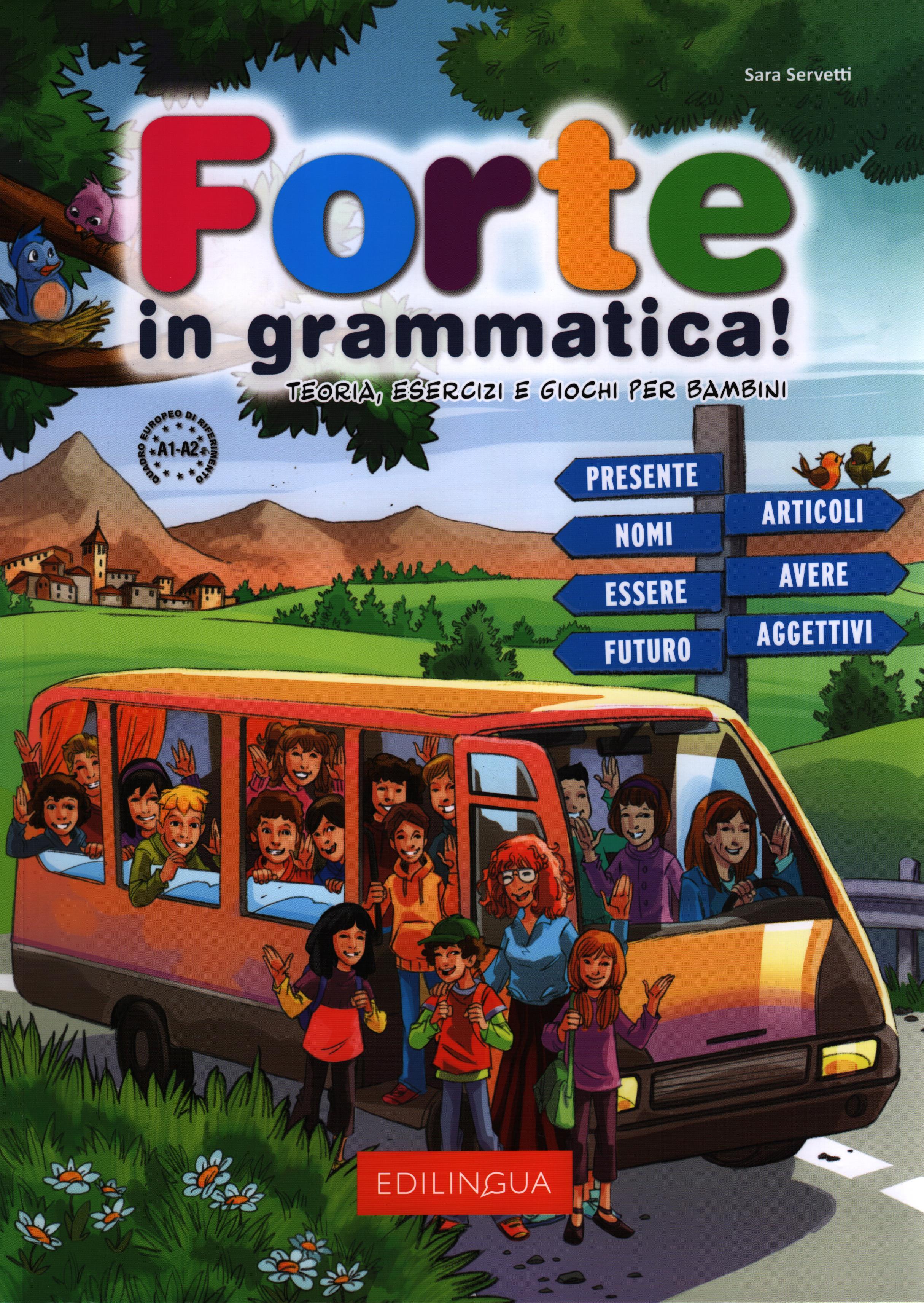Forte in grammatica! : Teoria, esercizi e giochi per bambini / Sara Servetti. - Roma : Edilingua, 2015. - 152 strony : ilustracje kolorowe, 28 cm.