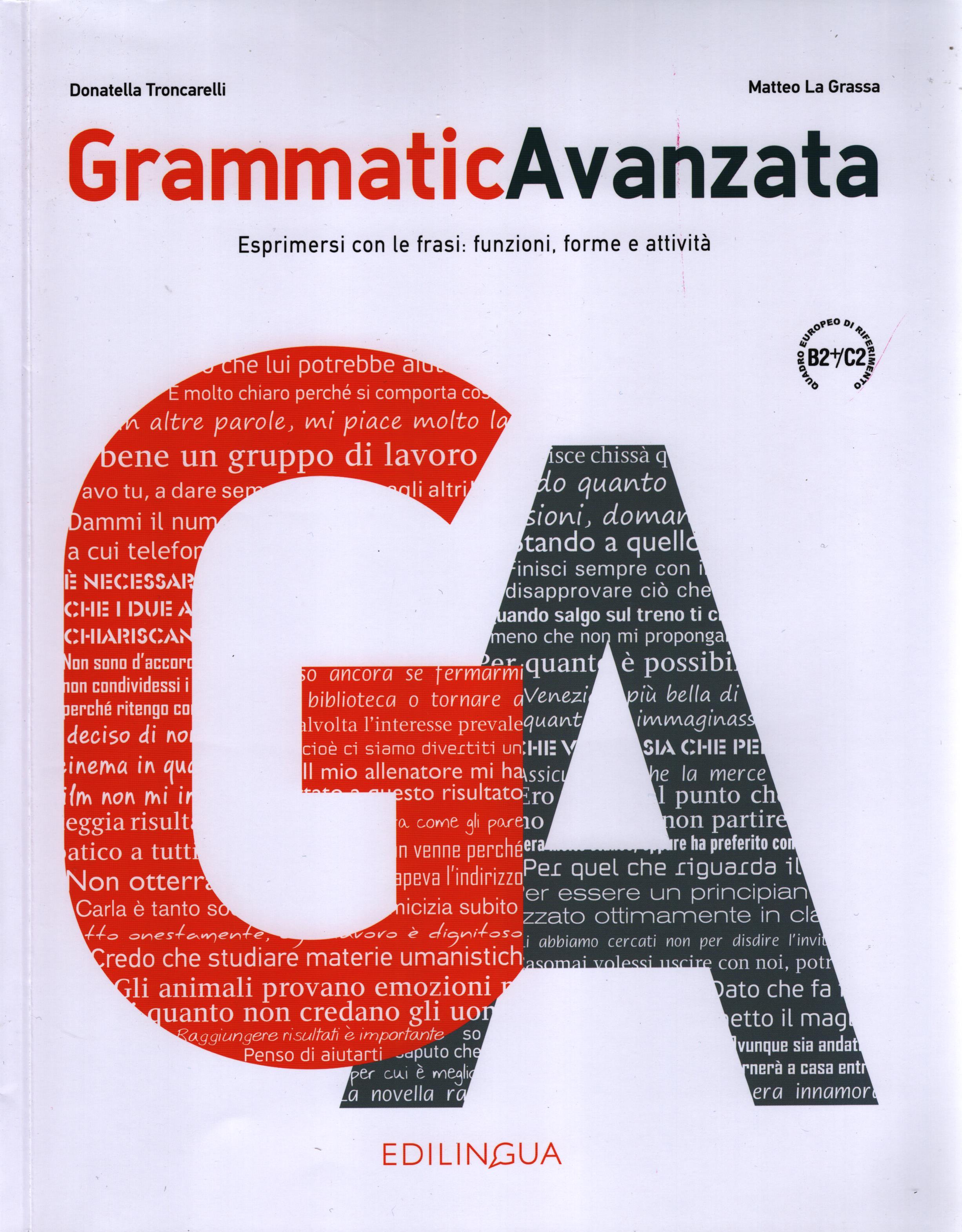 GrammaticAvanzata si rivolge a studenti adulti e giovani adulti di livello B2+/C2 del Quadro Comune Europeo di Riferimento per le Lingue e si propone, seguendo un approccio orientato alla comunicazione, di fornire allo studente gli strumenti necessari per poter selezionare, all'interno di una rosa di modalità espressive disponibili, le forme che gli permettono di esprimersi in modo adeguato, efficace e corretto.