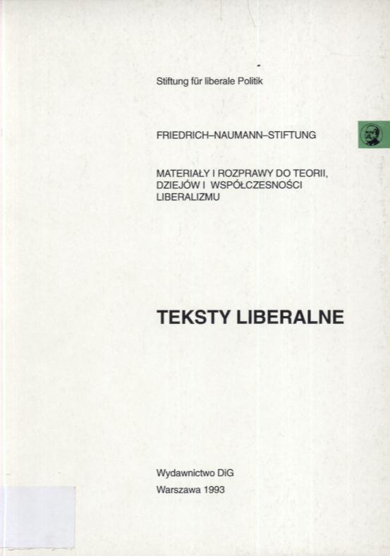 (Materiały i Rozprawy do Teorii, Dziejów i Współczesności Liberalizmu ; t. 1)