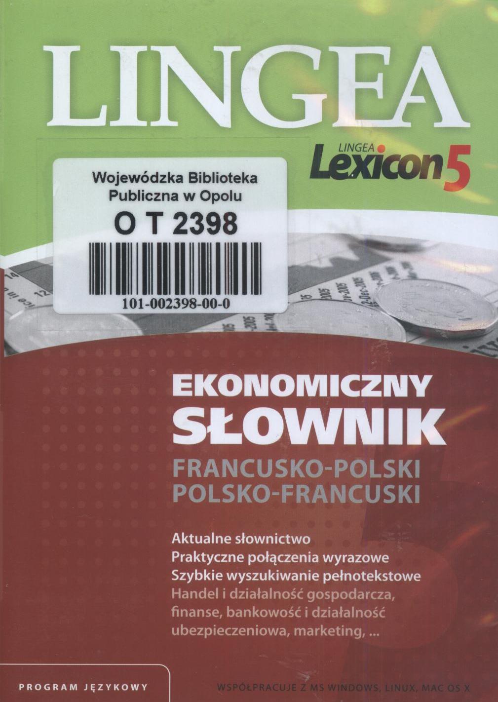 Ekonomiczny słownik francusko-polski, polsko-francuski Lingea Lexicon 5 - Kraków : Lingea, 2013 - 1 dysk optyczny (CD-ROM) : dźw., kolor ; 12 cm.