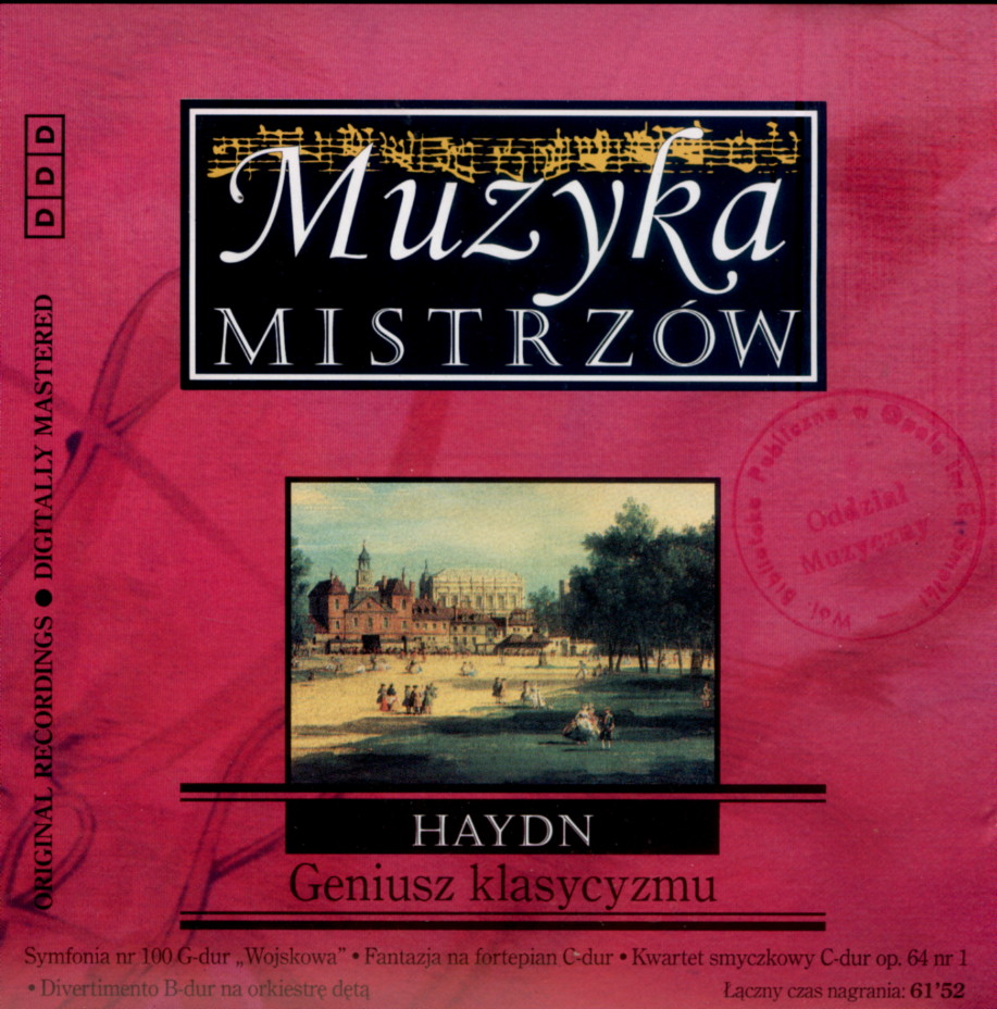 Zawiera: Symfonia Nr 100 G-dur "Wojskowa" / ork. Süddeutsche Philharmonie ; dyr. Alexander von Pitamic (25:07 min.); Fantazja (Capriccio) na fortepian C-dur / fort. Ernst Gröschel (6:47 min.); Kwartet Smyczkowy C-dur, op.64 nr 1 / zesp.kamer. Caspar Da Salo Quartet (19:17 min.); Divertimento B-dur na orkiestrę dętą / ork. Musici Di San Marco (10:25 min.).