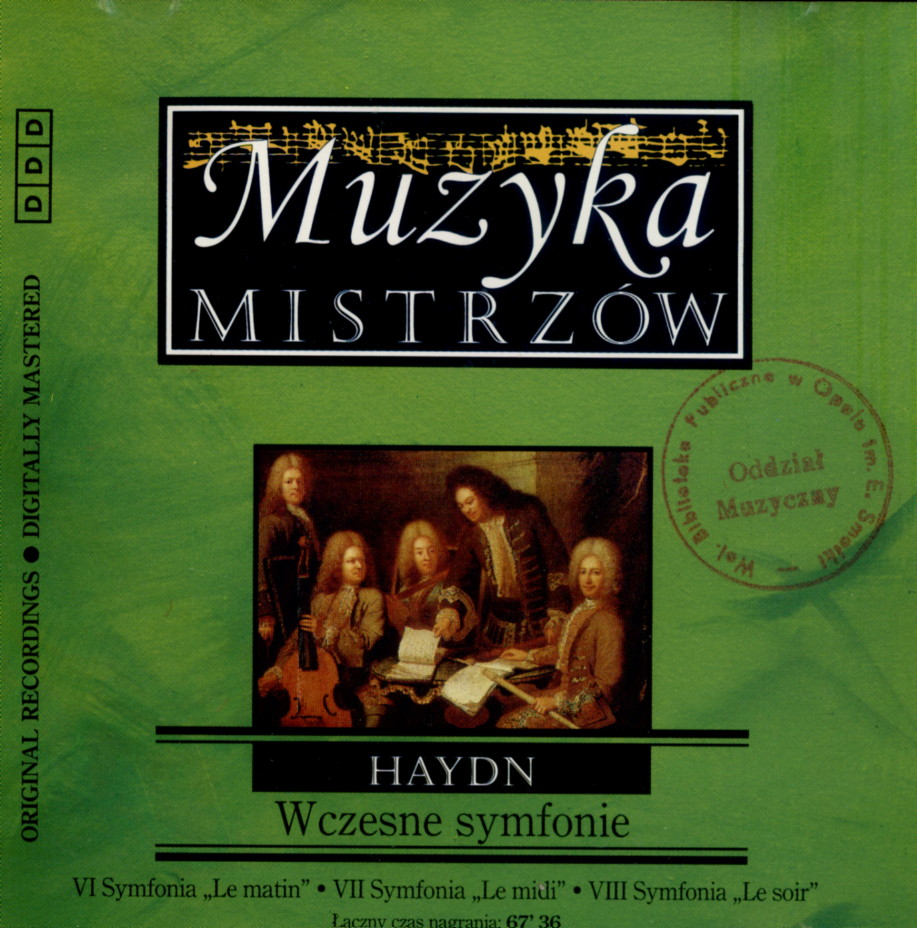 Wczesne symfonie / Franz Joseph Haydn ; ork. Musici Di San Marco. - Warszawa : De Agostini Polska, 1998. - 1 płyta audio (CD) (1 godz 07 min 36 s) : zapis cyfrowy, stereo ; 12 cm.
