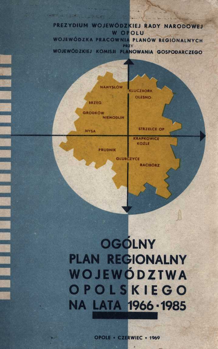 „Niniejszy projekt „Ogólnego planu regionalnego województwa opolskiego na lata 1966-1985" stanowi kolejne studium techniczno-ekonomiczne, określające zasady rozmieszczenia sił wytwórczych, kierunki rozwoju sieci osadniczej, poziom przyszłych potrzeb społecznych oraz warunki ich optymalnego zaspokojenia. Zawarte w projekcie założenia w miarę możliwości będą realizowane w kolejnych 5-letnich planach gospodarczych".
