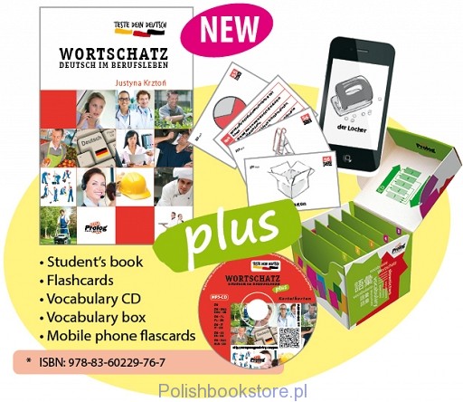 Wortschatz : Deutsch im Berufsleben / Justyna Krztoń. - Kraków : Prolog Szkoła Języków Obcych, cop. 2014. - 193 strony, [30] k. tabl. luzem : ilustracja ; 24 cm + 1 dysk optyczny (CD).