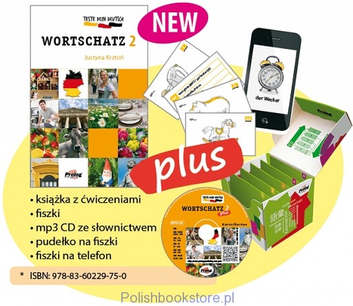 Wortschatz = Słownictwo. 2 / Justyna Krztoń. - Kraków : Prolog Szkoła Języków Obcych, cop. 2012. - 134 strony, [51] k. tabl. luzem : ilustracje ; 24 cm + 1 dysk optyczny (CD).