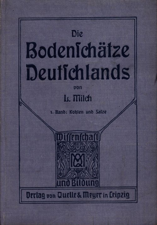 Deutschlands Bodenschätze. 1, Kohlen und Salze / von L. Milch. - Leipzig : Verlag von Quelle & Meyer, 1912. - 151 stron, 1 karta tablic : ilustracje ; 18 cm.