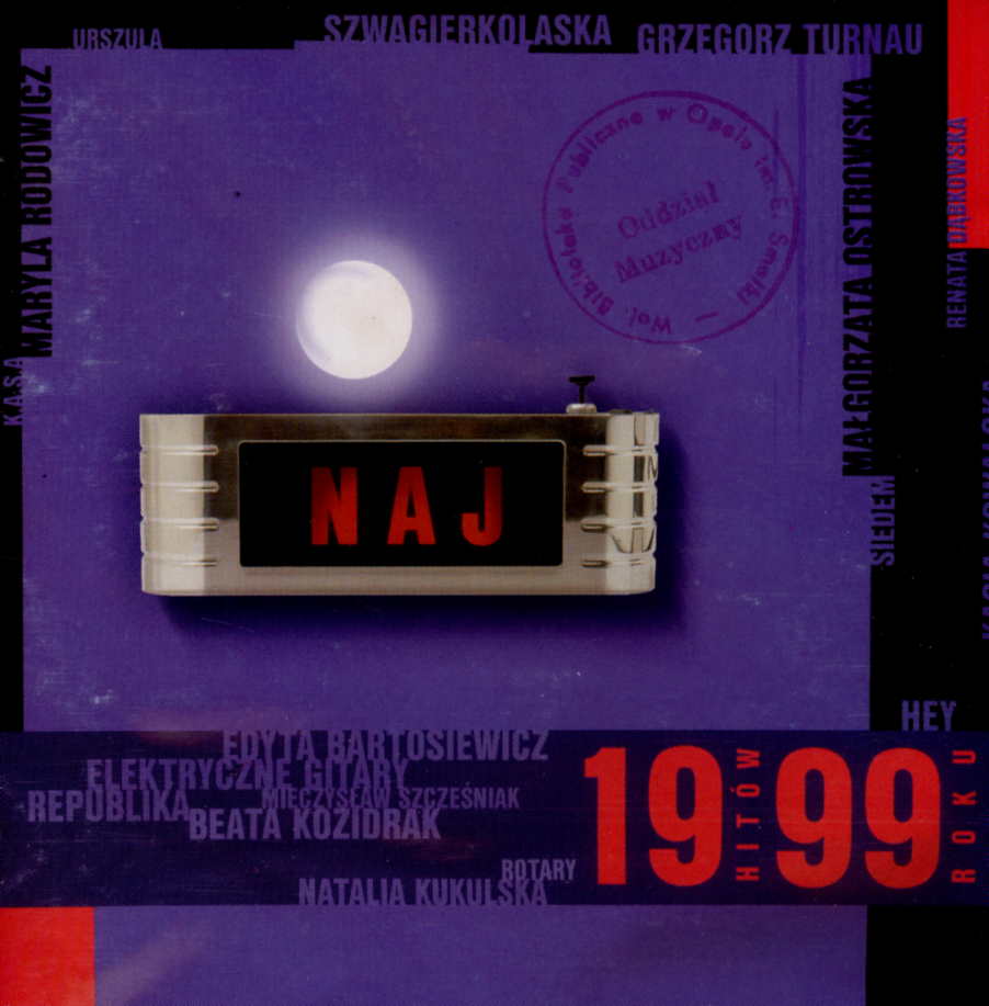 Naj : 19 hitów 99 roku. - Warszawa : Universal Music Polska, 1999. - 1 płyta audio (CD) (1 godz 14 min 02 s) : zapis cyfrowy, stereo ; 12 cm.