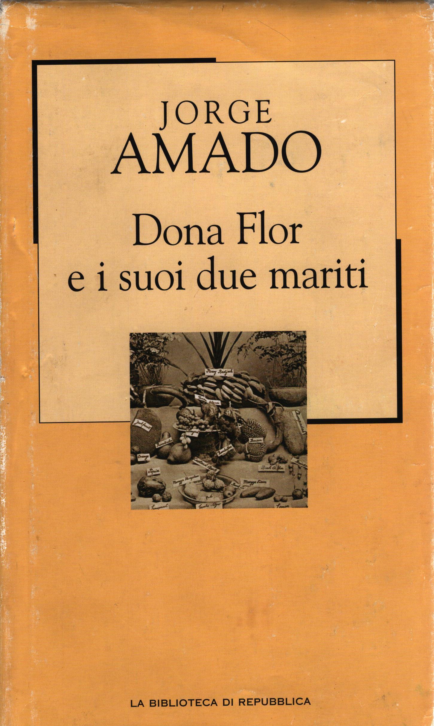 Il romanzo ruota attorno alla vedovanza di dona Flor e al suo lutto stretto, vissuto nel ricordo di Vadinho, delle loro ambizioni, del fidanzamento e dello sposalizio. Coglie l'intimità della giovane vedova, il suo riserbo, le sue notti insonni e la sua insoddisfazione. Racconta di come arrivò onorata al suo secondo matrimonio, quando il fardello del defunto cominciava a pesare sulle sue spalle, e di come visse in pace e armonia, senza dispiaceri né soprassalti, con suo bravo secondo marito, nel mondo della farmacologia e della musica. E mentre lei brilla nei salotti e il coro dei vicini le ricorda la sua felicità, Vadinho, nel suo corpo astrale, la visita, la corteggia, le elargisce gioie eccezionali e consigli formidabili.