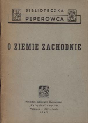 O Ziemie Zachodnie : (zbiór artykułów). - Warszawa : "Książka", 1945 (Łódź : Druk. "Książka"). - 64 strony ; 15 cm.