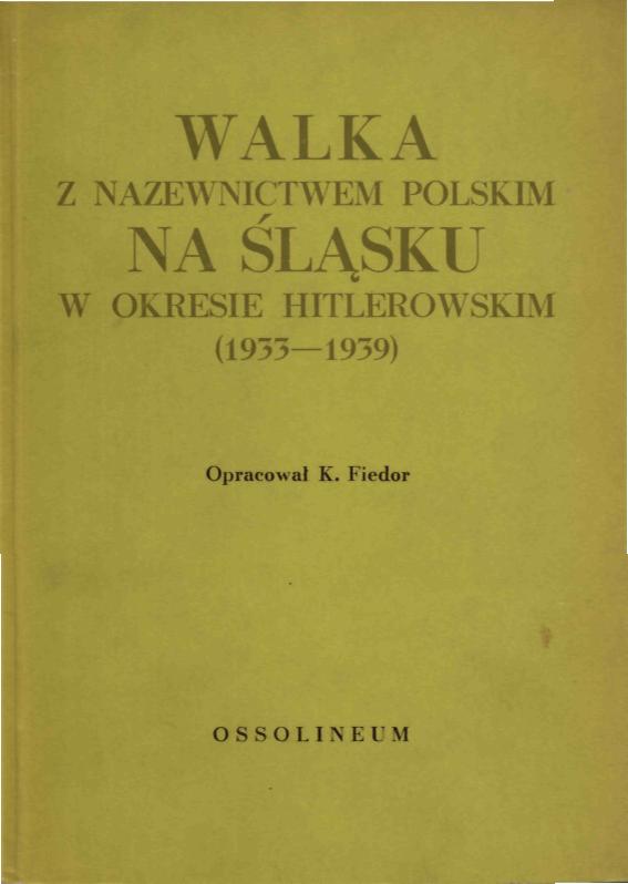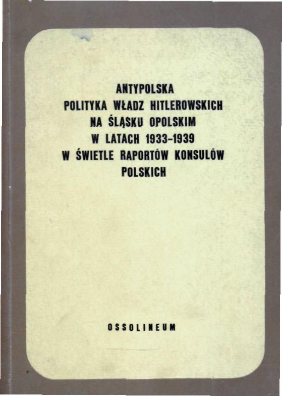 Tyt. oryg.: Le politique antipolonaise des autorités hitlériennes en Silésie d'Opole dans les années 1933-1939 á la lumiére des rapports des.