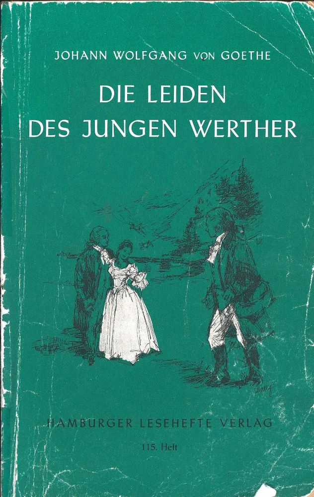 Die Leiden des jungen Werthers lautet der ursprüngliche Titel des von Johann Wolfgang Goethe verfassten Briefromans, in dem der junge Rechtspraktikant Werther bis zu seinem Suizid über seine unglückliche Liebesbeziehung zu der mit einem anderen Mann verlobten Lotte berichtet. Er wurde 1774 veröffentlicht und war nach dem nationalen Erfolg des Dramas Götz von Berlichingen (1773) Goethes zweiter großer, jetzt sogar europäischer Erfolg. Beide Werke sind der literarischen Strömung des Sturm und Drang zuzuordnen. (Quelle: Wikipedia.de)