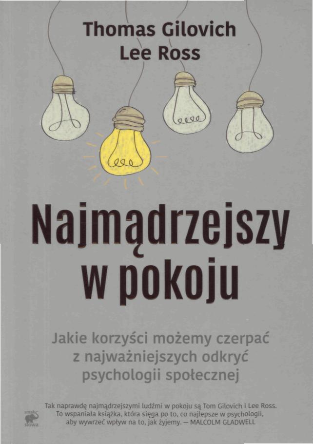 Bo choć w „Najmądrzejszym w pokoju” głos zabierają wybitni naukowcy, to odnoszą się do realnego, codziennego życia, w którym każdego dnia – w domu, pracy, na zakupach, spacerze czy w restauracji – spotykamy ludzi. To z nimi zarówno popadamy w konflikty, rywalizujemy, negocjujemy, jak i budujemy związki. Od nich uzależniamy zagospodarowanie swojego czasu, a także pieniędzy. I to na nich mamy szansę świadomie, mądrze wpływać, aby osiągać zamierzone cele. To wiedza niezbędna, by stać się „najmądrzejszym w pokoju” – rodzinie, społeczeństwie, biznesie czy polityce. Książka ukazuje się w momencie, w którym można mówić o ogromnym postępie w psychologii społecznej i nauce o dokonywaniu ocen i podejmowaniu decyzji – w dziedzinach zajmujących się aspektami mądrości. Thomas Gilovich i Lee Ross wnieśli istotny wkład w ich rozwój, poświęcając im łącznie osiemdziesiąt lat życia. Z laboratoriów psychologów napływały informacje o przełomowych odkryciach dotyczących zachowań człowieka, pozwalających wyjść poza ograniczony punkt widzenia. Rozumienie myśli, uczuć, wyborów i działań ludzi – to wiedza, która powinna być znana każdemu, kto pragnie być mądrzejszy.