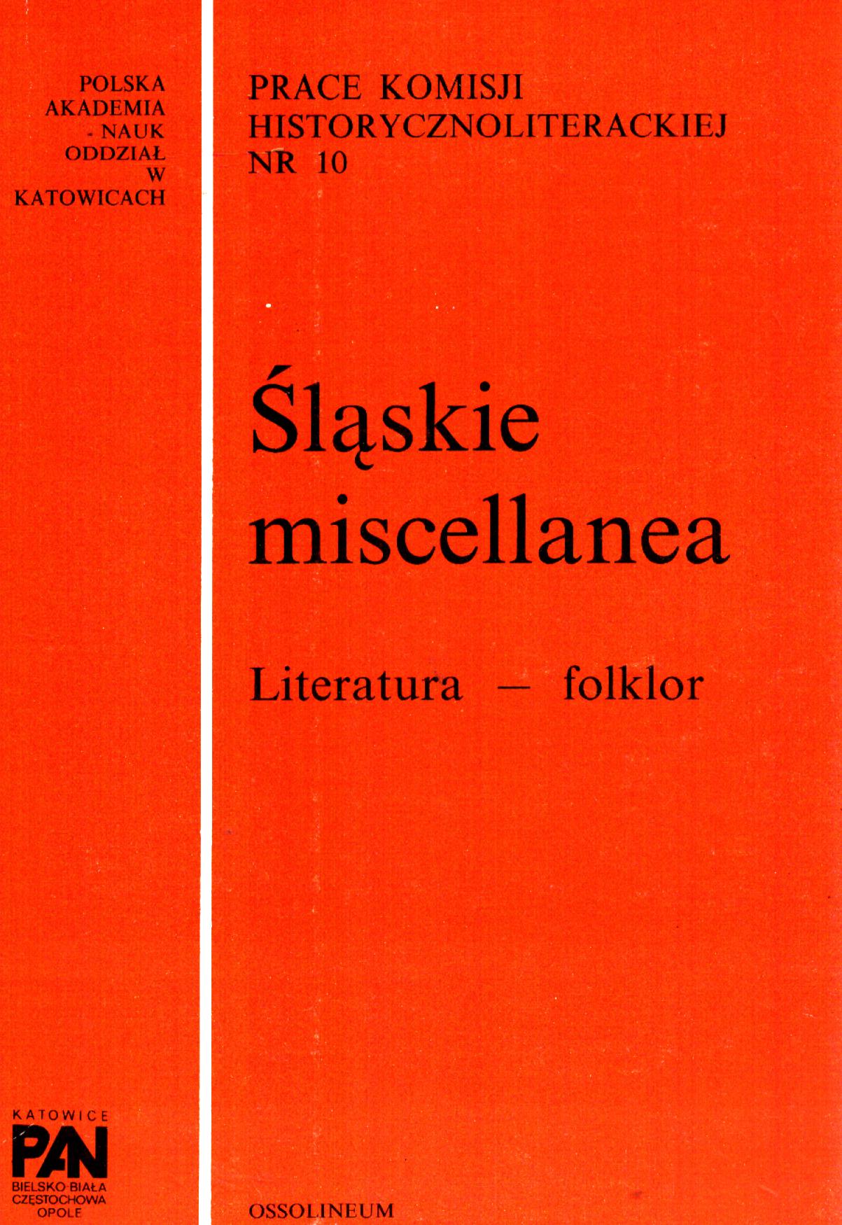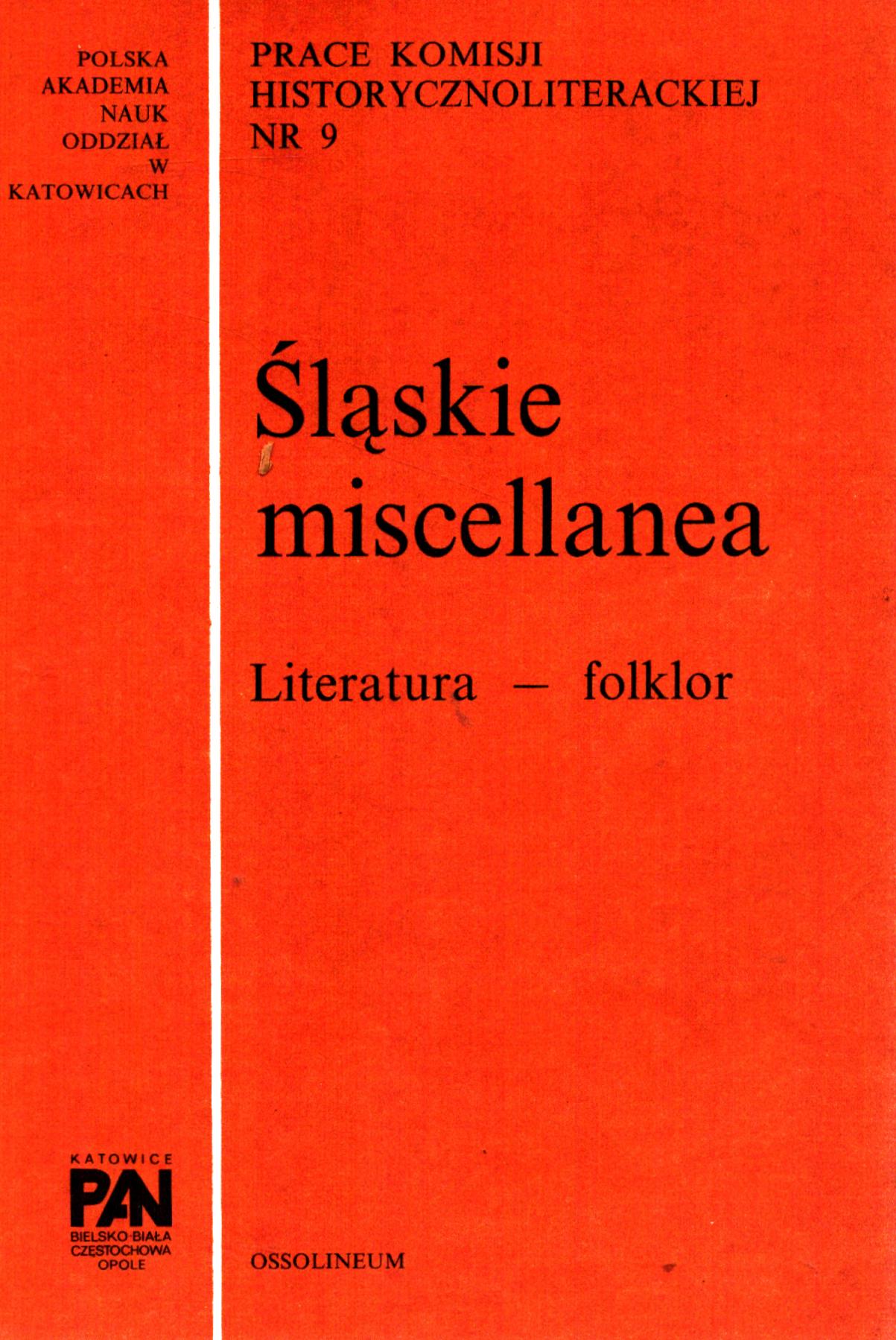(Prace Komisji Historycznoliterackiej / Polska Akademia Nauk. Oddział w Katowicach, ISSN 0137-964X ; nr 29)
