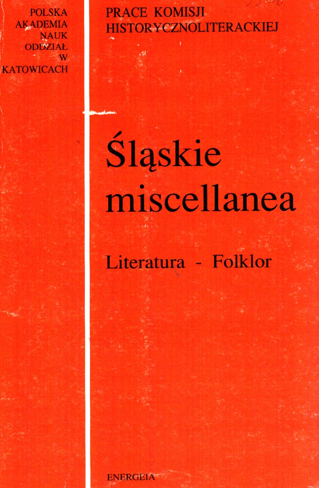 (Prace Komisji Historycznoliterackiej / Polska Akademia Nauk. Oddział w Katowicach, ISSN 0137-964X ; nr 23)