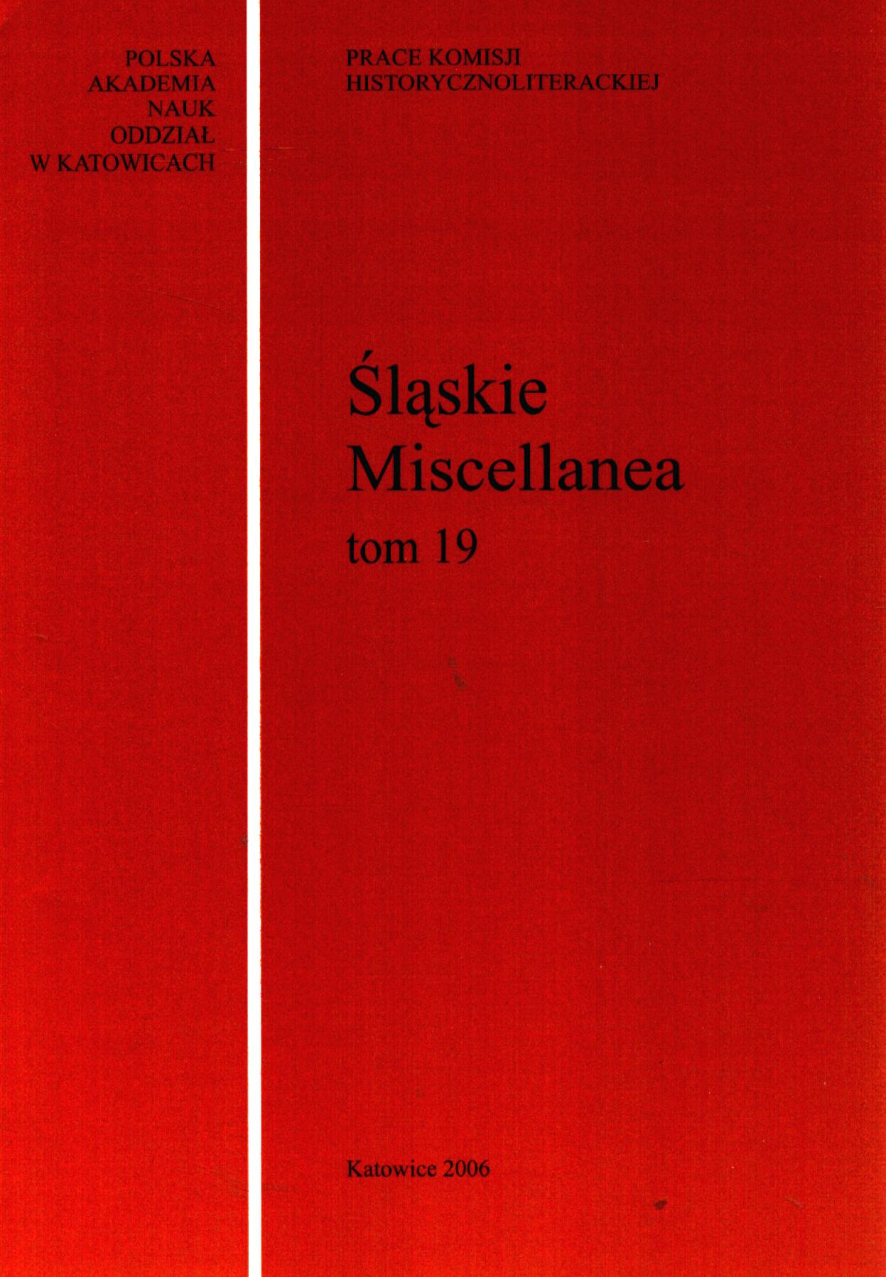 (Prace Komisji Historycznoliterackiej / Polska Akademia Nauk. Oddział w Katowicach, ISSN 0137-964X ; nr 8)