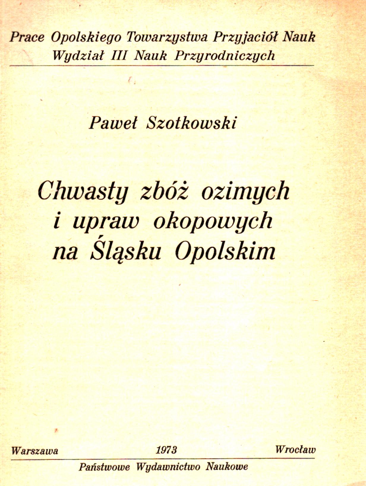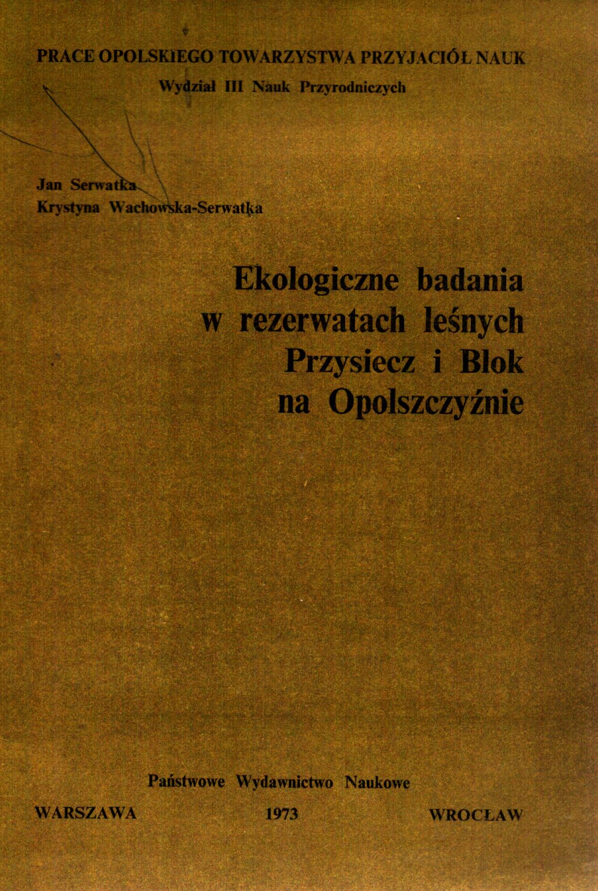 (Prace Opolskiego Towarzystwa Przyjaciół Nauk. Wydział III Nauk Przyrodniczych)